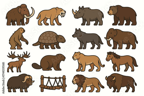 Fototapeta premium Cartoon illustrations of prehistoric and modern animals in various poses
