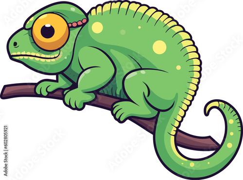 © Mohammad Selim, Fototapeta premium Cartoon image of a chameleon on a branch.