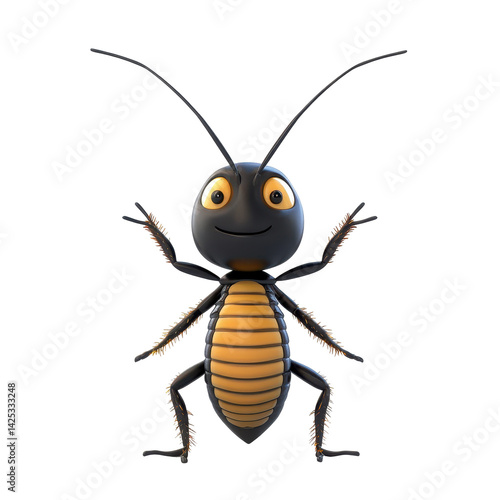 Fototapeta premium Cartoon insect with a friendly smile and bright colors in a playful pose on a...