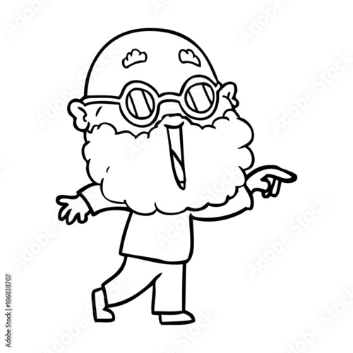 © lineartestpilot, Fototapeta premium cartoon joyful man with beard pointing finger