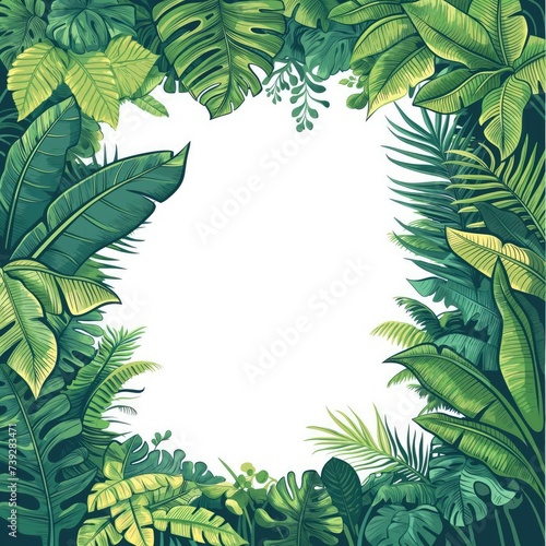 Naklejka premium cartoon jungle, simple illustration, frame, blank in middle, book page, greenary