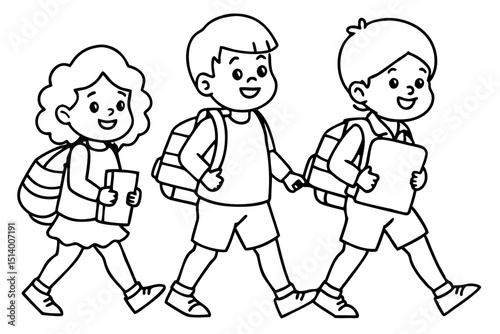 Naklejka premium Cartoon Kids Walking to School with Teachers