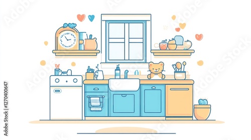 Fototapeta premium Cartoon Kitchen Interior Design Concept