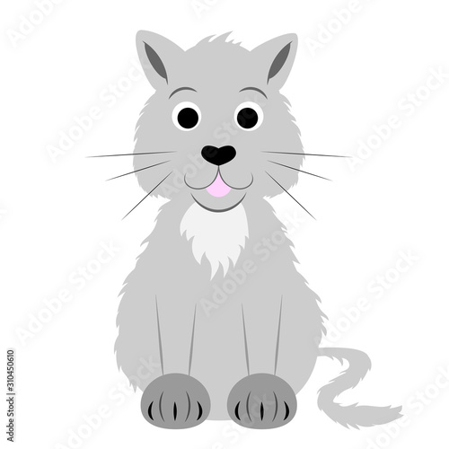 © iuvmiro, Obraz premium Cartoon kitten. Gray cat. Vector illustration on a white background. Drawing for children.