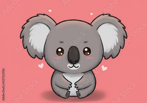 © RightPurpose, Fototapeta premium Cartoon Koala Sitting Illustration with Hearts on Pink Background