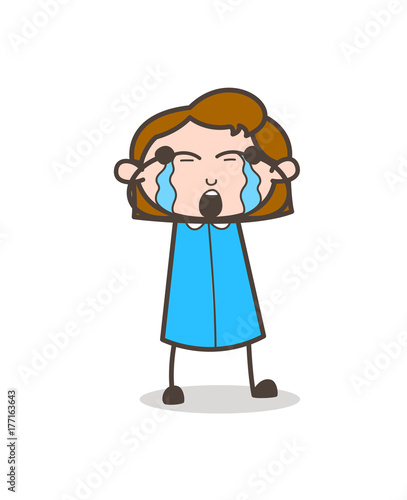 Obraz premium Cartoon Lady Crying Loudly Face Vector
