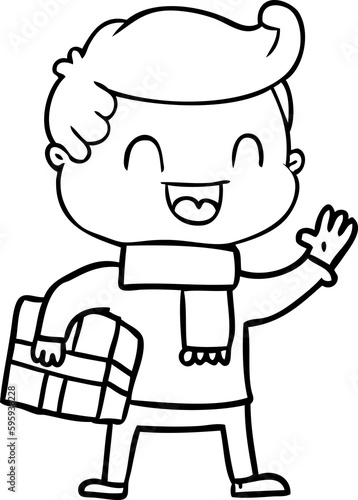 © lineartestpilot, Fototapeta premium cartoon laughing man holding gift
