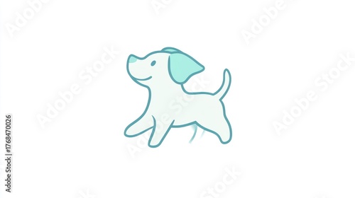 Obraz premium Cartoon light blue dog walking on a white background. Use children, art