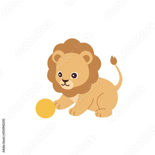 © Sakura, Fototapeta premium Cartoon lion cub with a fluffy mane and tail, against a plain white background, illustrated simply