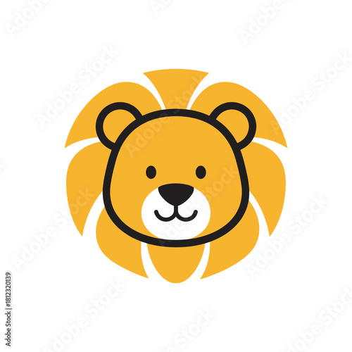 © Kiki, Obraz premium Cartoon lion head with a yellow mane and black outlines on a white background.