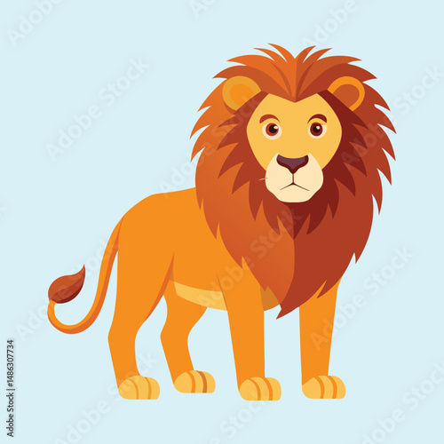 © SharikaShammi, Obraz premium Cartoon Lion Standing Proudly with a Majestic Mane on light blue backdrop