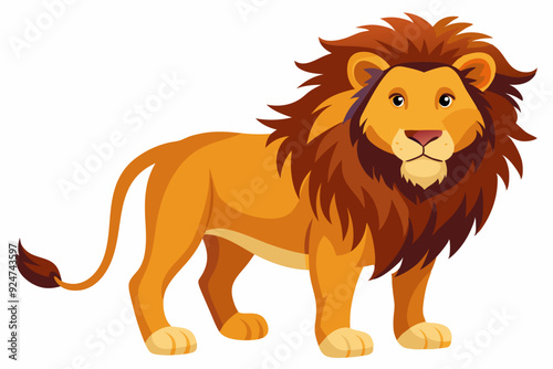 © nurdesign99, Obraz premium Cartoon Lion Standing with a Full Mane