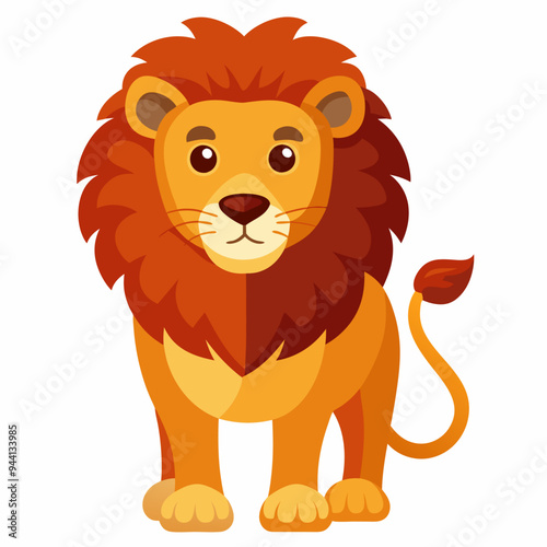 Obraz premium Cartoon Lion with Red Mane and a Curled Tail