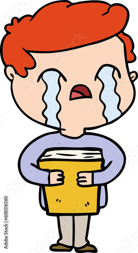 © lineartestpilot, Obraz premium cartoon man crying holding book