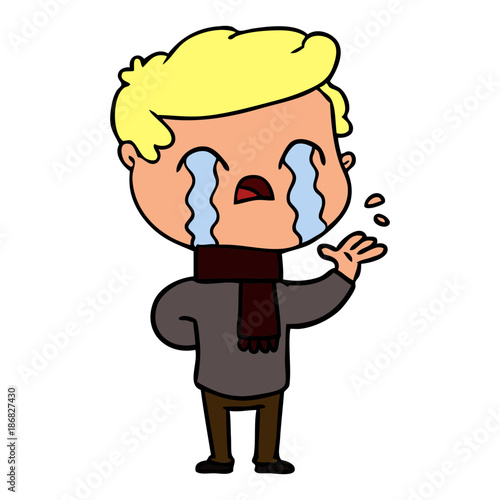 © lineartestpilot, Fototapeta premium cartoon man crying wearing winter scarf
