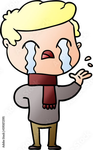 © lineartestpilot, Fototapeta premium cartoon man crying wearing winter scarf