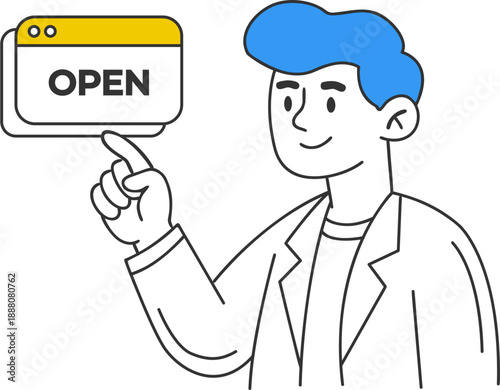 Obraz premium Cartoon Man Holding Open Sign Illustration.