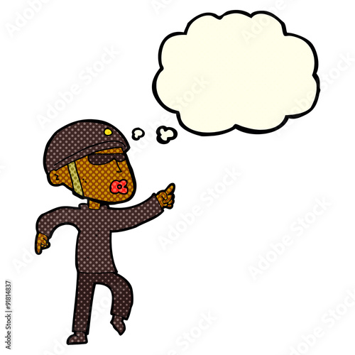 Naklejka premium cartoon man in bike helmet pointing with thought bubble