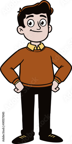 Fototapeta premium Cartoon man in brown sweater with black pants and a smile.