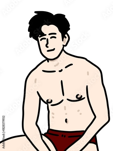 © mansum008, Fototapeta premium cartoon man in shorts on white background