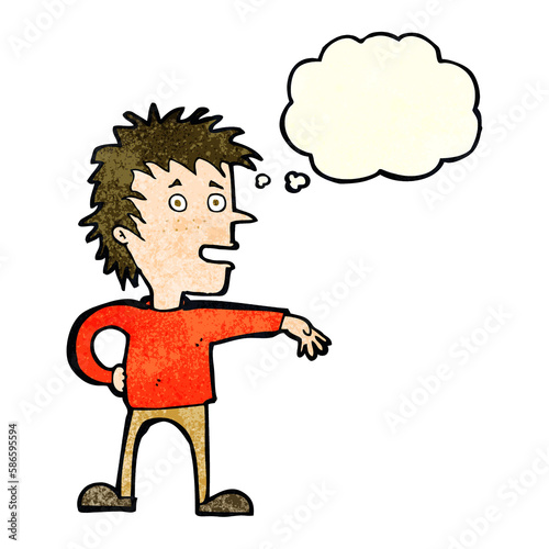 Fototapeta premium cartoon man making dismissive gesture with thought bubble
