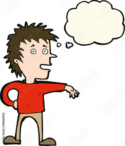 Fototapeta premium cartoon man making dismissive gesture with thought bubble
