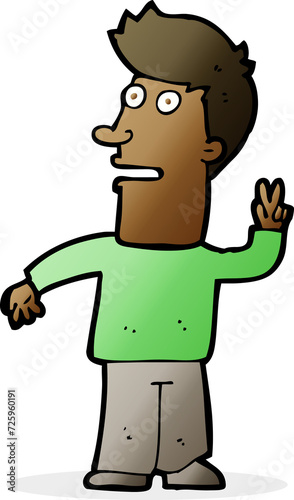 © lineartestpilot, Obraz premium cartoon man making peace sign