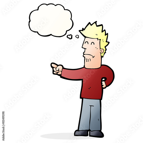 Obraz premium cartoon man pointing with thought bubble