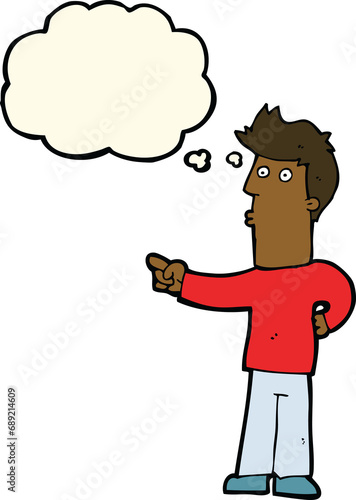 Obraz premium cartoon man pointing with thought bubble