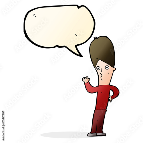 Obraz premium cartoon man waving with speech bubble
