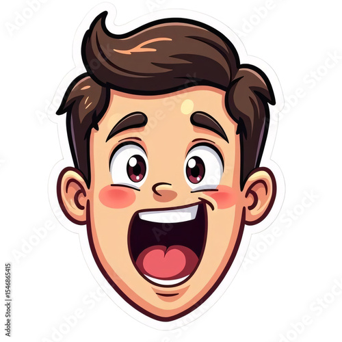 Fototapeta premium Cartoon Man with Brown Hair, Excited Facial Expression, Joyful Surprise