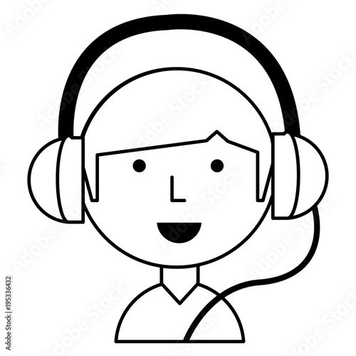 © djvstock, Obraz premium Cartoon man with headphones over white background, vector illustration