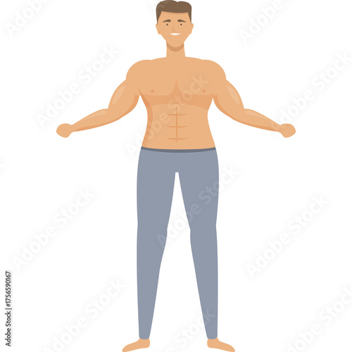 Fototapeta premium Cartoon Man With Muscular Torso And Grey Pants Standing With Arms...