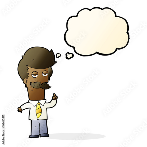 Fototapeta premium cartoon man with mustache explaining with thought bubble