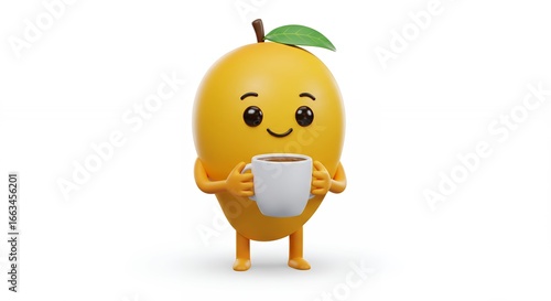 © Anik, Obraz premium Cartoon mango character with coffee cup