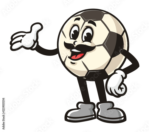 Naklejka premium Cartoon mascot character of Football or Soccer ball with mustache
