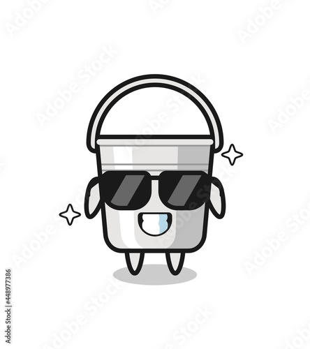 Fototapeta premium Cartoon mascot of metal bucket with cool gesture