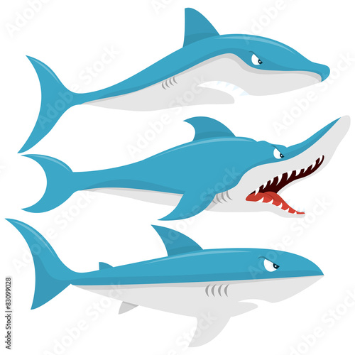 © totallyjamie, Obraz premium Cartoon Mean Sharks