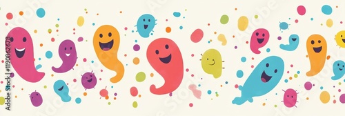 Fototapeta premium Cartoon microbes display joy and vibrant colors in an imaginative design...