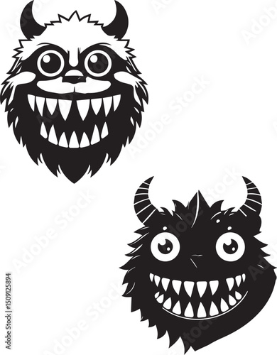 © Irfan Vector , Fototapeta premium Cartoon Monster Mascot Face Icons Sharp teeth silhouette vector