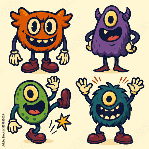 Fototapeta premium Cartoon Monsters Characters Collection Happy and Expressive Colorful Creatures