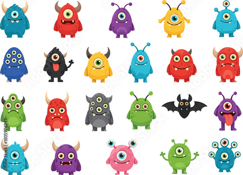 © JOYDIP ROY, Naklejka premium Cartoon monsters, colorful creatures, kids illustration, fantasy characters, cute aliens, playful design, vector art, children graphics, fun monsters, unique styles