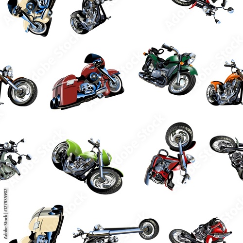 © Mechanik, Fototapeta premium Cartoon Motorcycle seamless pattern isolated on white background