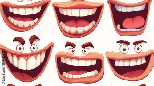 © pornthip, Obraz premium Cartoon Mouths Expressions Smiles Wide Open Happy Funny Faces Vector Illustration