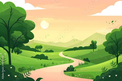 © Longo, Fototapeta premium cartoon, nature, grass, road, illustration