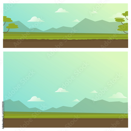 © marie_tatiant, Obraz premium Cartoon nature vector illustration. Game background.