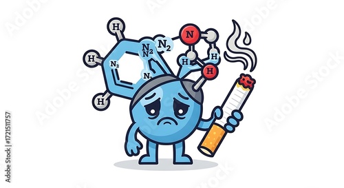 © Ytalo, Fototapeta premium "Cartoon Nicotine Molecule Character with Cigarette Vector Illustration"
