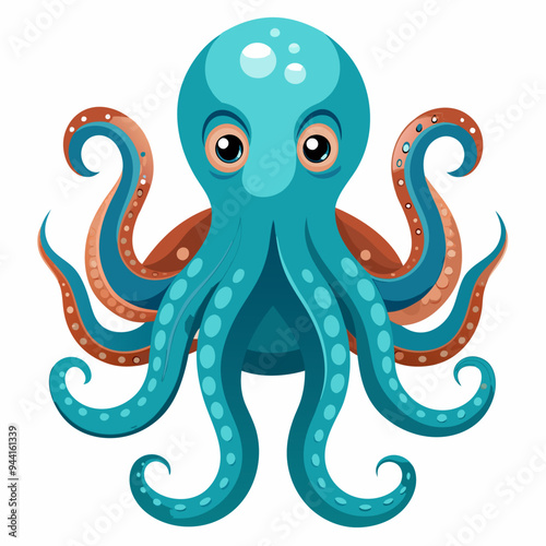 Obraz premium Cartoon Octopus with Blue Tentacles and Big Eyes