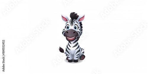 Obraz premium Cartoon of a cute zebra on a white background, suitable for children's educational materials