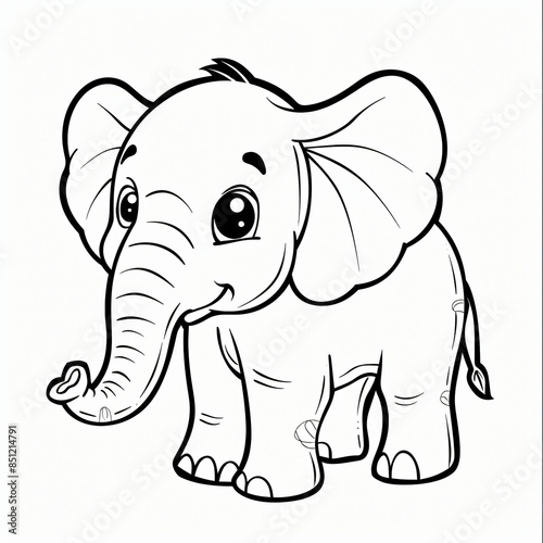 © yuniazizah, Naklejka premium cartoon of a Elephant children coloring book page